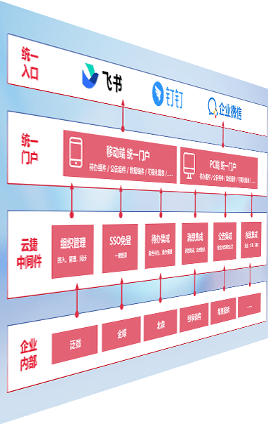 对协作平台提供支持服务,,支持企业应用与协作平台对接,,包含组织同步、、消息集成、、、、待办集成等。。支持目前主流的协作平台:钉钉、、、企微和飞书。。。。